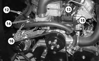 18. Connect hose (13) and hose (15) to the engine and tighten the clamps.
