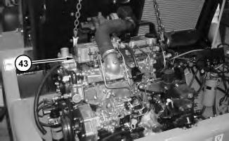 1. Attach a suitable lifting device to engine (43). Install the engine in the machine and install bolts (44). The weight of the engine is approximately 317 kg (700 lb).