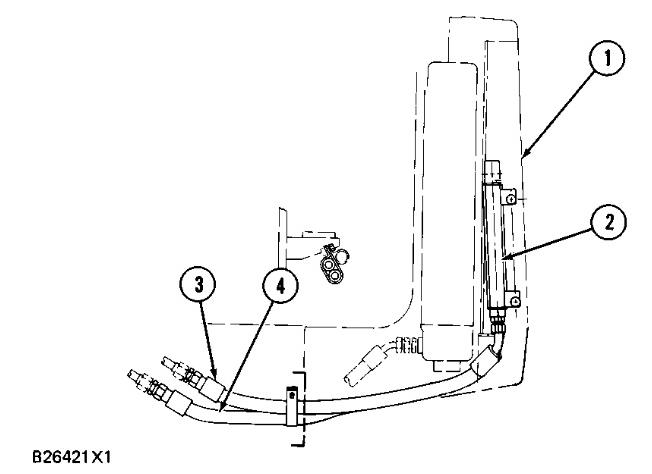 Do not start the machine with hose assemblies (3) and (4) disconnected. Connect the fitting on hose assembly (4) to the fitting on the machine for hose assembly (3) before the machine is started. Failure to do this can cause damage to the hydraulic system.