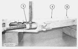 12. Fasten a nylon strap and hoist to boom (4). Lift the boom, remove the wood block and lower the boom to the ground.