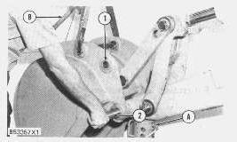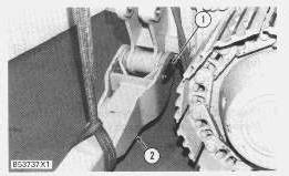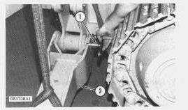 1. Fasten a hoist to the stabilizer. Remove pin (1) and remove stabilizer (2). The weight of stabilizer (2) is 72 kg (160 lb.).