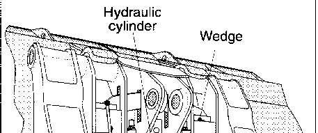 TheQuickCoupler'swedgesareactuatedbyahydrauliccylinderthatreceivespressureoilfromthe machine'sthirdhydraulicvalvecircuit.