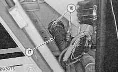 10. Loosen two clamps (16) and remove hose (17).