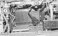 3. Remove two bolts (8) connecting the upper fan guard (7) and the lower fan guard (9). Remove eight bolts (10) and washersand remove both guards.