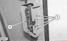 2. Remove four screws (5) and remove latch (6).