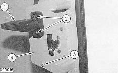 1. Remove two screws (2) and handle (1). Remove screw(3) and remove plate (4).
