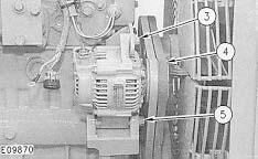 NOTE: Install the belt in reverse order. If replacement is necessary, only replace alternator beltsin sets of two. Adjust alternator (4) to obtain the proper tension. Consult the Operation & Maintenance Manual for proper belt tightening specifications.