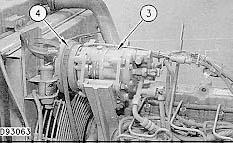 2. Remove bolt (6) nut and washers. Remove belt (4) from air conditioning compressor (3) and position the air conditioning compressor (3) out of the way.