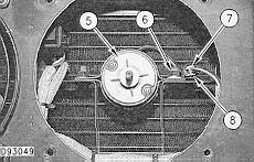 4. Remove two nuts(6) and washers. Remove one clip (8), and remove motor (5).