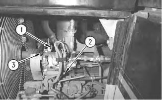 2. Loosen bolt (2) and relieve the tension on the belt. Remove air conditioner belt (3) .