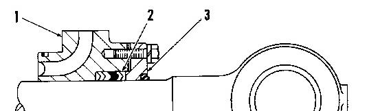 Oil leakage between the rod and the hydraulic cylinder packing can be the result of worn, cut, and/or distorted packing. Leakage can often be stopped by removing shims (2) located between retainer (1) and the cylinder head; this will allow the packing to be compressed against the rod when the retainer is tightened.
