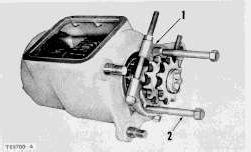 1. Bearing puller attachment. 2. Forcing screws.