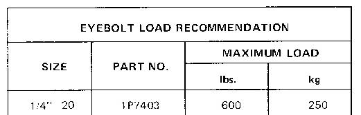 Forged eyebolts are available. Each size eyebolt has a maximum load recommendation.