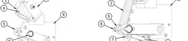 g. Insert hitch pin (6) through operator fork (5) and actuator rod (2).