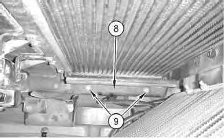 2. Install two bolts (10) which hold the base of the aftercooler core in place.