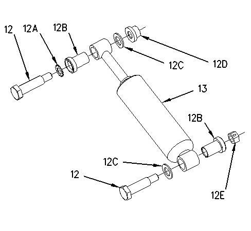 9. Remove bolts (12) in order to remove shock absorber (13) from scissor assembly (11) and housing assembly (14).