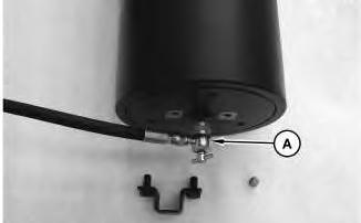 The accumulator is filled with dry nitrogen. Do not loosen or remove the valve or cap from the top of the accumulator. A purge screw at the bottom of the accumulator can be used to release the pressure that is left in the system.