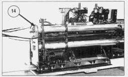 13. Attach a strap and a lift truck to extender (14) as shown. Pull the extender to the left approximately three feet.