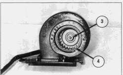 1. Remove two bolts (2), and separate blower motor assembly (1) from upper chamber assembly (3) and fuel nozzle group (4).