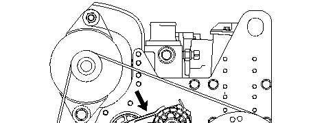 Tocheckthebelttension,apply110N(25lbft)offorcemidwaybetweenthepulleys.Acorrectly adjustedbeltwilldeflect9mm(0.35inch)to15mm(0.59inch).