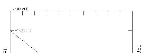 5.Determinethelowestoutsidetemperatureformachineoperation.Findthispointontheleft sideofthetable.Markthispoint.Drawahorizontallinefromthispoint.Stopthelineatthe intersectionofline"A".Labelthisnewline"C".