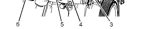 6. Remove nut (3) and bolt (5) (not shown) from alternator (6).