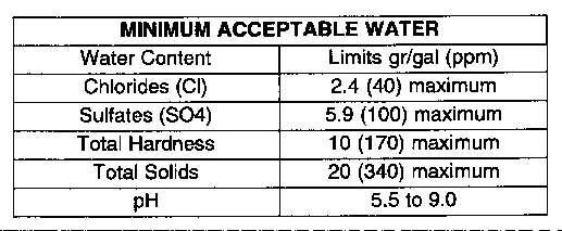Ifdistilledorde-ionizedwaterisNOTavailable,usewaterthatmeetstheminimumacceptable requirementsinthechart.Todetermineyourwatercharacteristics,contactthelocalwaterdepartment, agriculturalagentoranindependentlaboratorytoperformthetestingservice.