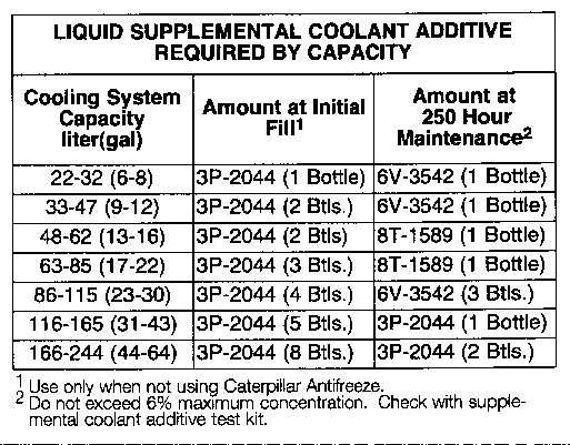Caterpillarorothermanufacturer'sproductscanbeusedasthe supplementalcoolantadditive.DonotmixCaterpillarSupplemental CoolantAdditive(Conditioner)liquidorelementswiththeother