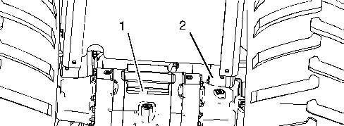 2.Inordertoadjustthealternatorbelt,loosenbracketbolt(2)andmountingbolt(1)onthe alternatorbracket.