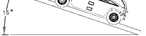 Positionthemachineontheinclineoftheslope,butnearthebaseoftheslopeinordertochecktheparking brake.Thetestpositionshouldbe26percentora15degreeslope.