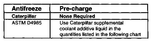 Neveruseanantifreeze/watercoolantonly,inCaterpillarengines. Supplementaladditivesmustbeusedregardlessoftheantifreeze concentration.