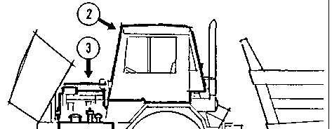 HydraulicTank(1),Cab(2),Engine(3).