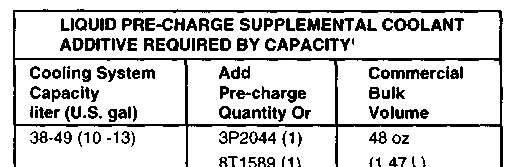 Supplementalcoolantadditivemustbeaddedevery250servicehoursbetweeninitialfillandthe every300servicehourscoolingsystemmaintenanceinterval.Installasupplementalcoolant additivemaintenanceelement(ifequipped)OR.47liter(1U.S.pint/16oz)foreach75liter(19.5 gal)ofcoolingsystemcapacity,every250servicehours.