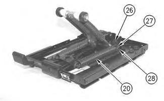 12. Install two springs (20) and plastic bearings (26) on height adjustment shaft (28). Install retaining ring (27) on each side of height adjustment shaft (28) .