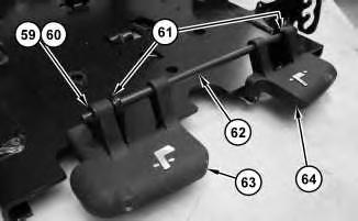 35. Remove retainer (59) and nylon washer (60). Repeat for the other side of rod (62). Remove lever (63), lever (64), and two nylon washers (61) from rod (62) .