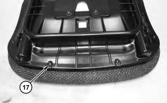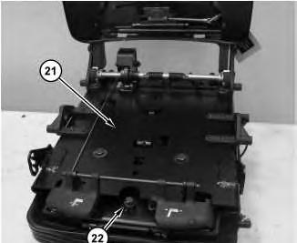 16. Remove bolt (22). Slide upper seat assembly (21) forward in order to remove upper seat assembly (21) .