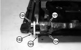 59. Remove nut (124). Remove bolt (122) and bushing (123). Remove bolt (121) and retainer (120) .