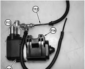 54. Remove hoses (112) and (113). Remove clamp (114) from compressor (115) .