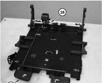 21. Lift lever (29) and use suitable Tooling to rotate the shaft of recliner assembly (28) towards the rear until the shaft stops rotating. There will still be spring pressure, however this action will reduce the existing spring pressure on recliner assembly (28) .