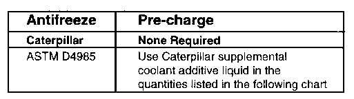 Neveruseanantifreeze/watercoolantonly,inCaterpillar engines.Supplementaladditivesmustbeusedregardlessof theantifreezeconcentration.