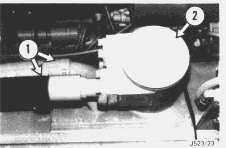 4. Disconnect the suction and return pipes (1) and remove the cover assembly (2) (18 bolts).