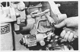 Thisswitchismountedinthefuelmanifoldbetweenthecleansideofthefuelfilterandthefuel injectionpumphousing.Lowfuelpressure(below3psi)openstheswitchandtheelectricalcircuit toeithertheshutoffsolenoidorthecircuitbetweenthealternatorandthealternatorregulator. Openingofthesecircuitspreventsthebatteryfrombecomingdischargedwhiletheengineis stopped.