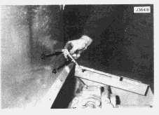 1. Stop the truck in the straight ahead position and apply the parking brake. Move the gear lever to the Neutral position and stop the engine. Remove the key and place suitable warning notices to prevent personnel starting the engine and operating the controls. Use the hand lever on the suspension control valve to fully lower the front suspension.