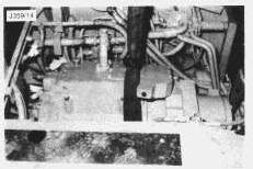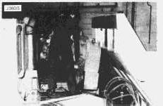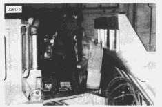 2. Attach a sling and connect to a hoist. Lower the assembly into position in the transmission compartment. Take care when lowering past the steering system pipes. The two pipes, slackened previously in "Remove Output Transfer Drive" procedure - steps 24 and 25, can be moved to provide the clearance necessary to position the assembly in the compartment.
