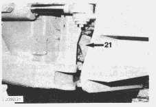 16. Remove the bolts securing the output transfer drive rear output yoke to the centre drive shaft (21). Slide the centre drive shaft backward.