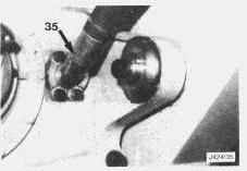 19. All trucks - Disconnect the sump line connection (35) from the output transfer drive housing.