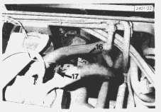 13. Remove the bolts that secure the transmission drive shaft (16). Remove the drive shaft. D400 (early trucks) - Disconnect the wires (17) from the magnetic pick-up. Mark the wires to ensure correct reconnection.