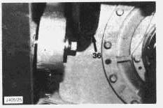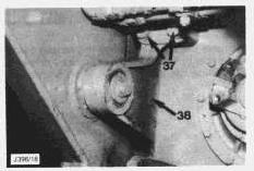 21. Remove the upper bolts (37) securing the left and right hand mounting brackets (38).