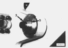 7. Lock the locating ring (5) in position by using a punch to indent the ring lip into the slot in each pivot pin (3).