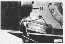 27. Remove the remaining lower bolts (46) from the left and right hand mounting brackets. Remove both mounting brackets (38).